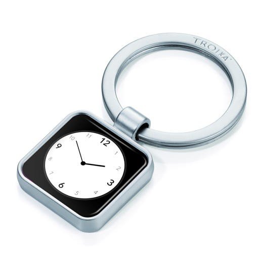 Porte-clés dans un design APP, avec décor, métal, chrome mat, motif "HEURE"